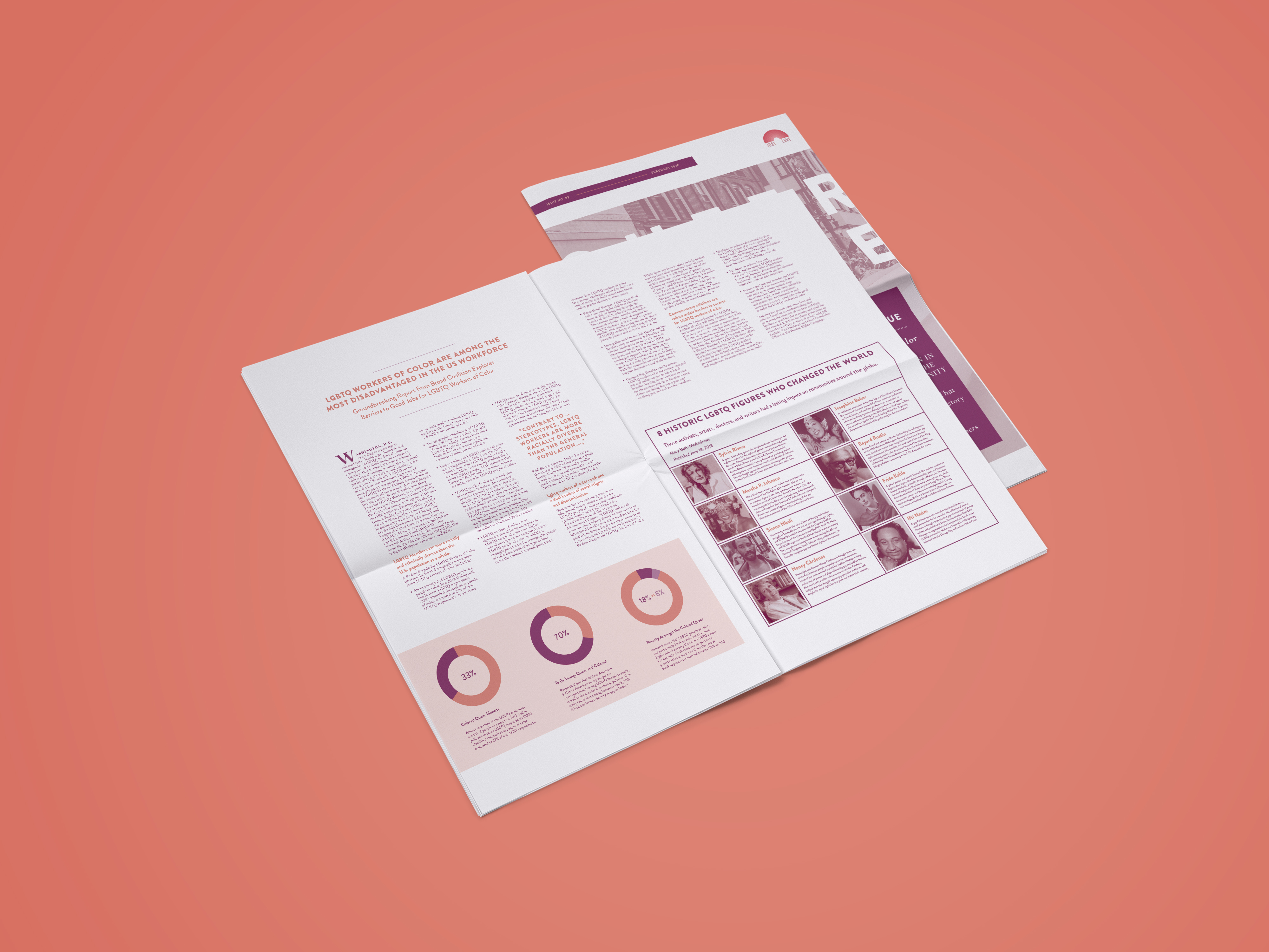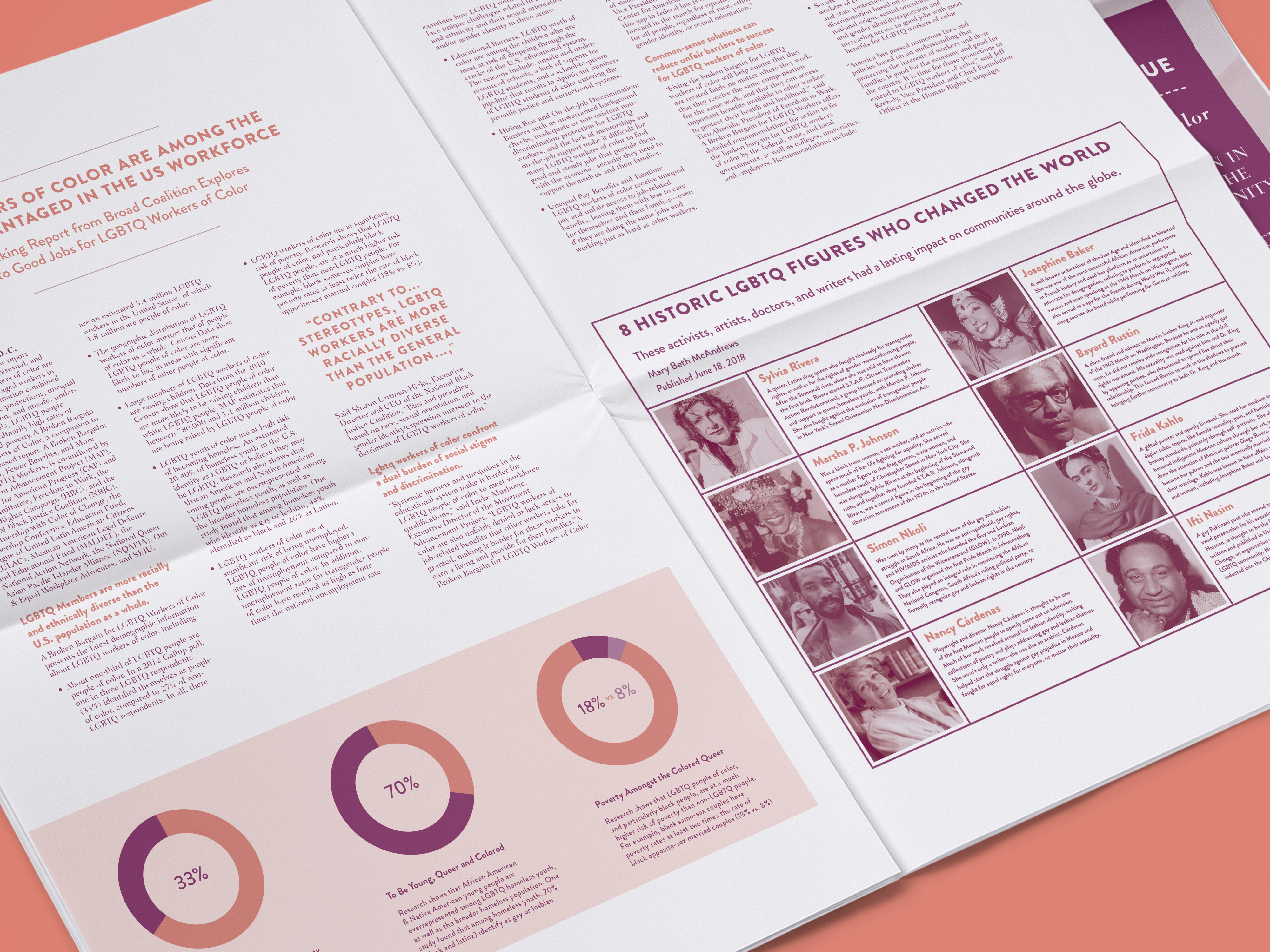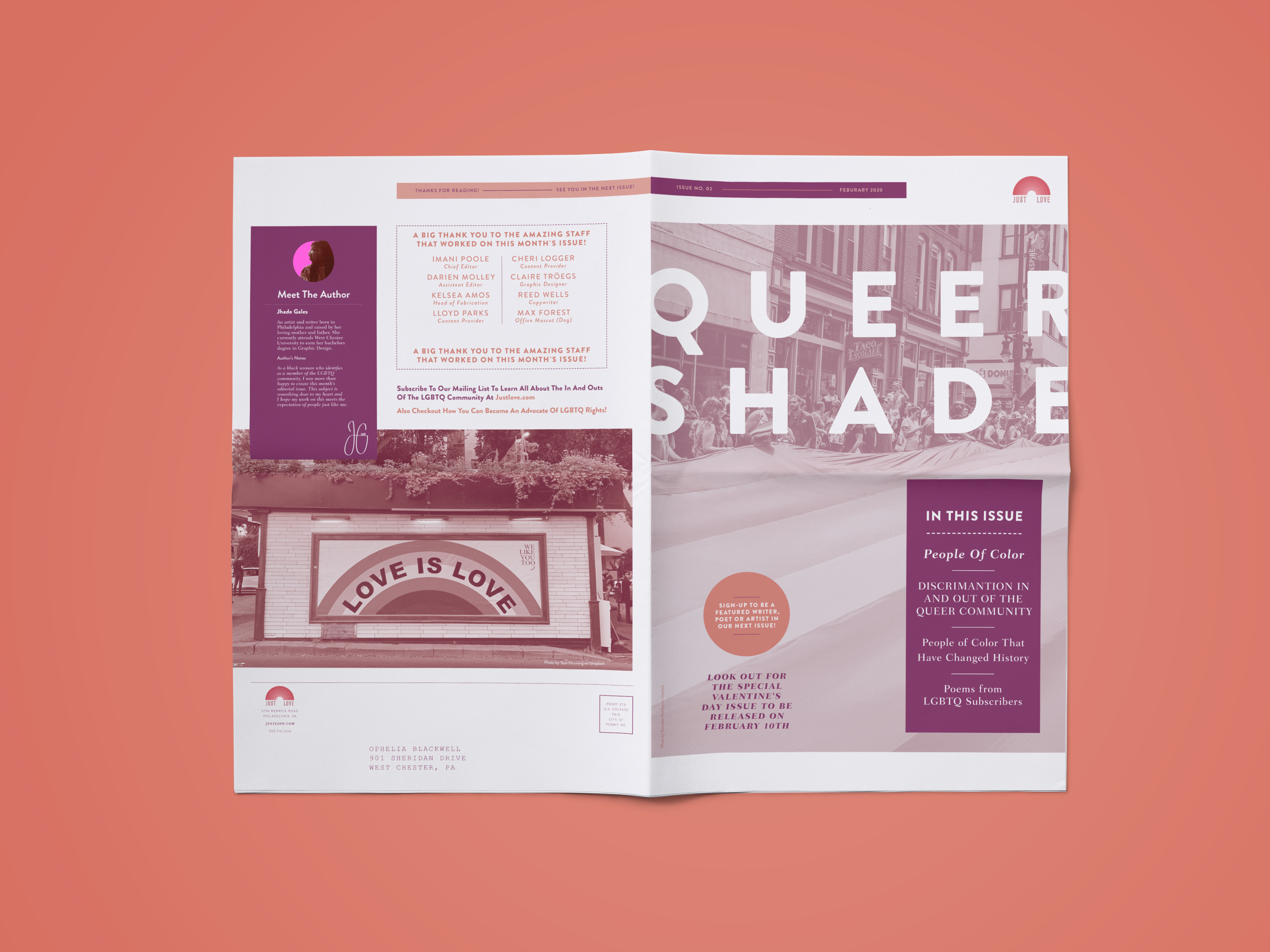 This project was a unique endeavor as it marked my initial effort in crafting a long-form editorial. Titled “Queer Shade,” it highlights LGBTQA+ individuals of color and features articles, statistics, and literature.
