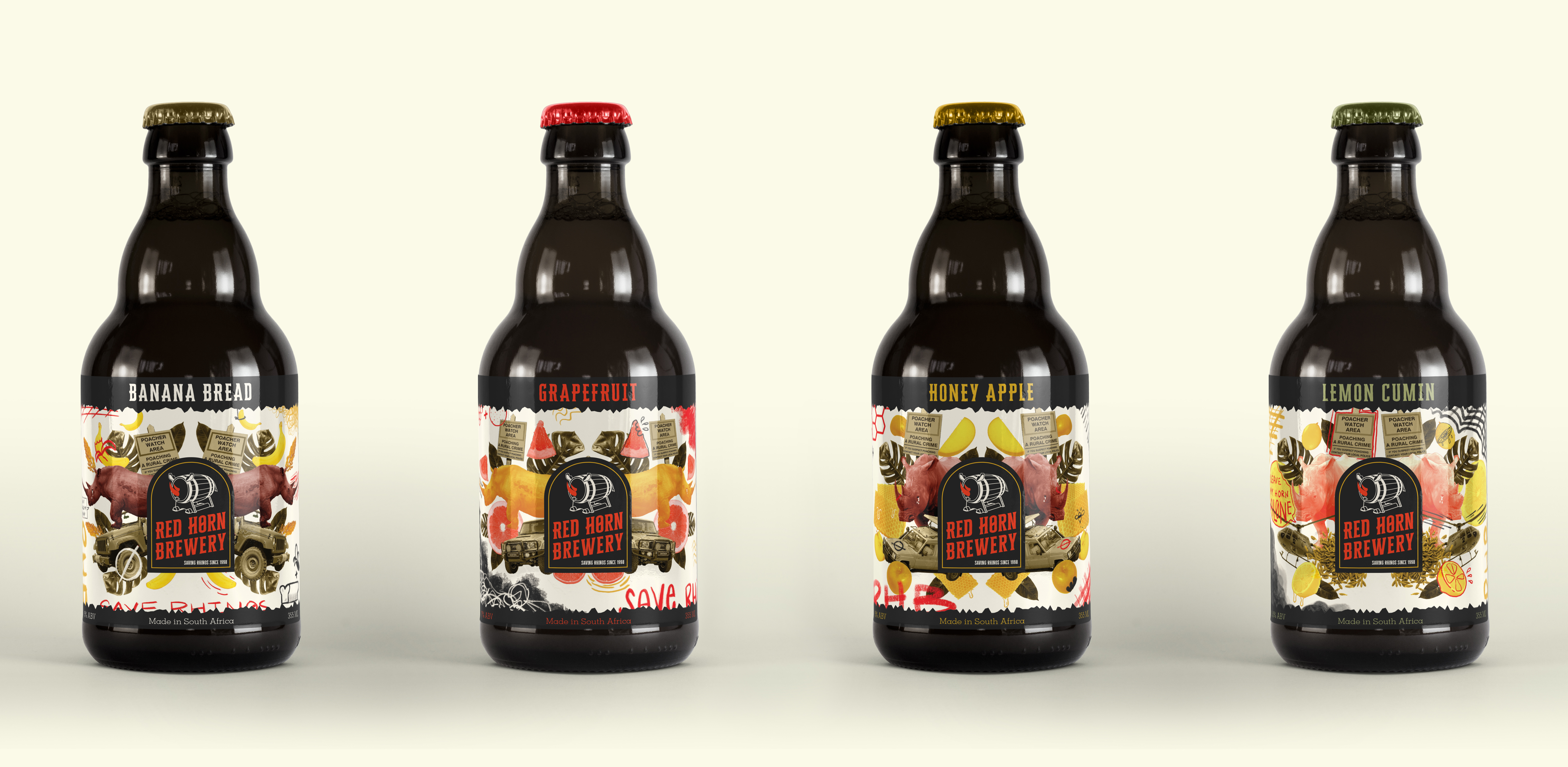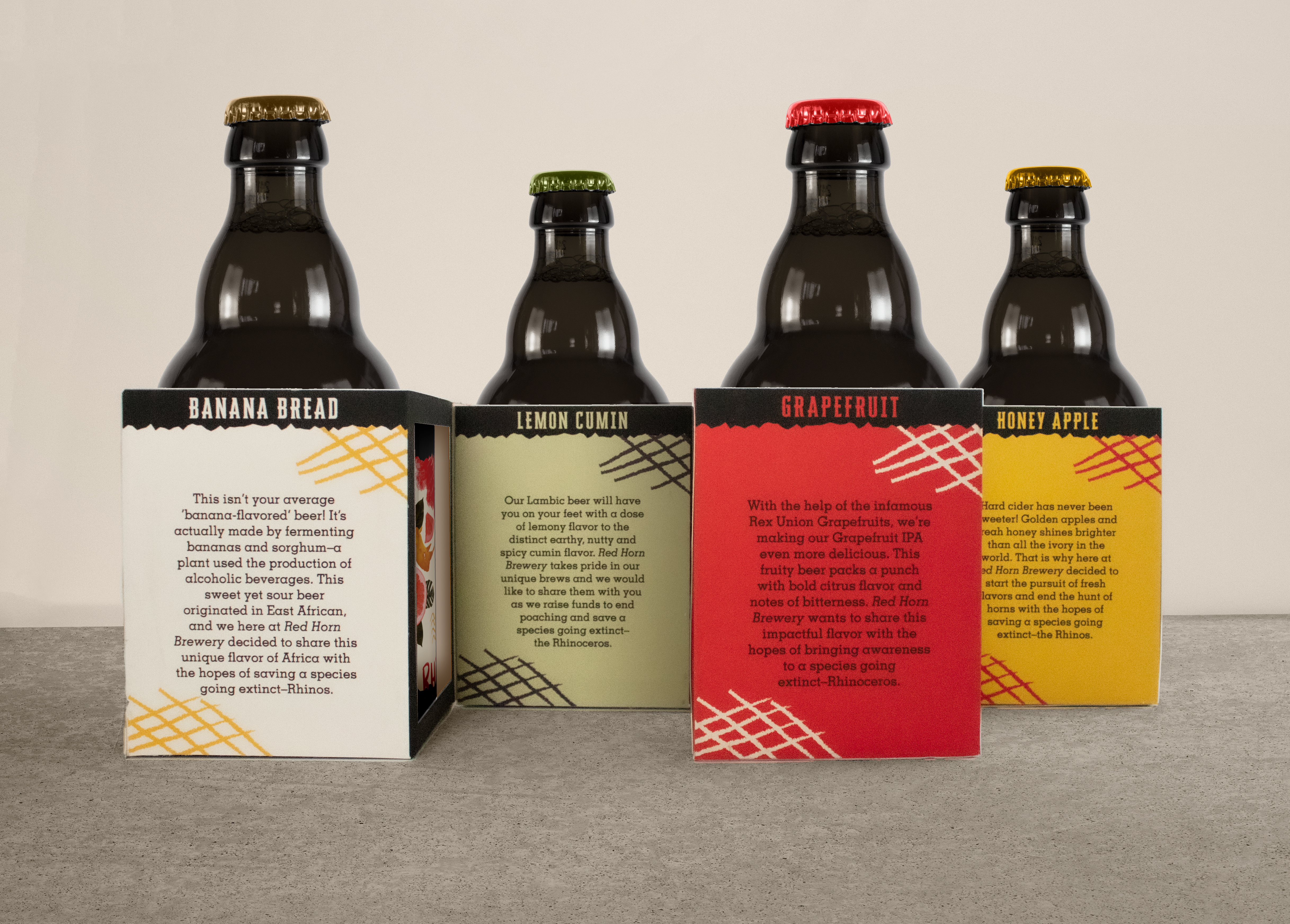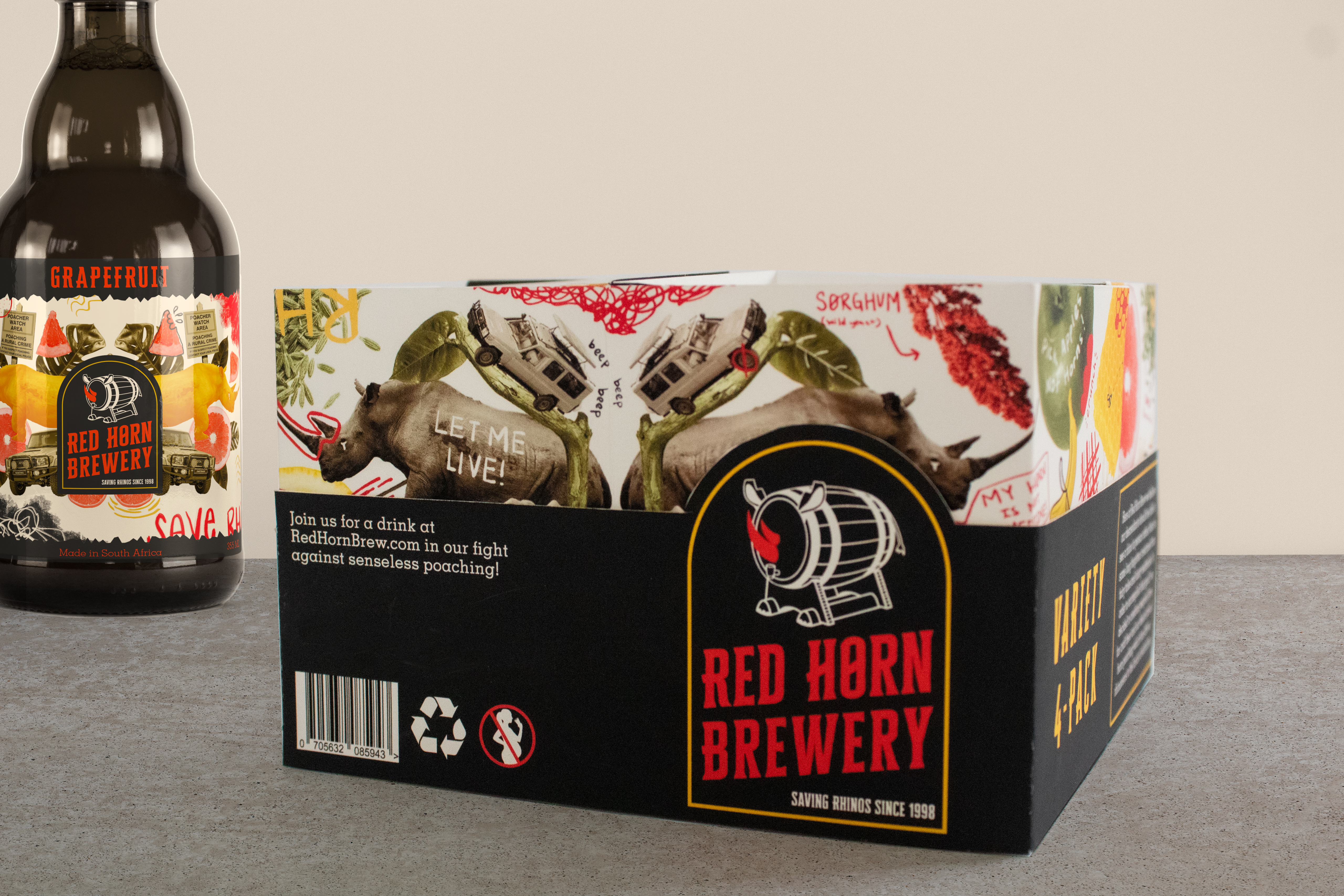 How do you get the world to care about disappearing rhinos? You give them something bold to drink and a reason to think. Red Horn Brewery combines craft beer with conservation, and the design follows suit—earthy textures, strong lines, and powerful symbolism across branding, packaging, and digital. Every sip starts