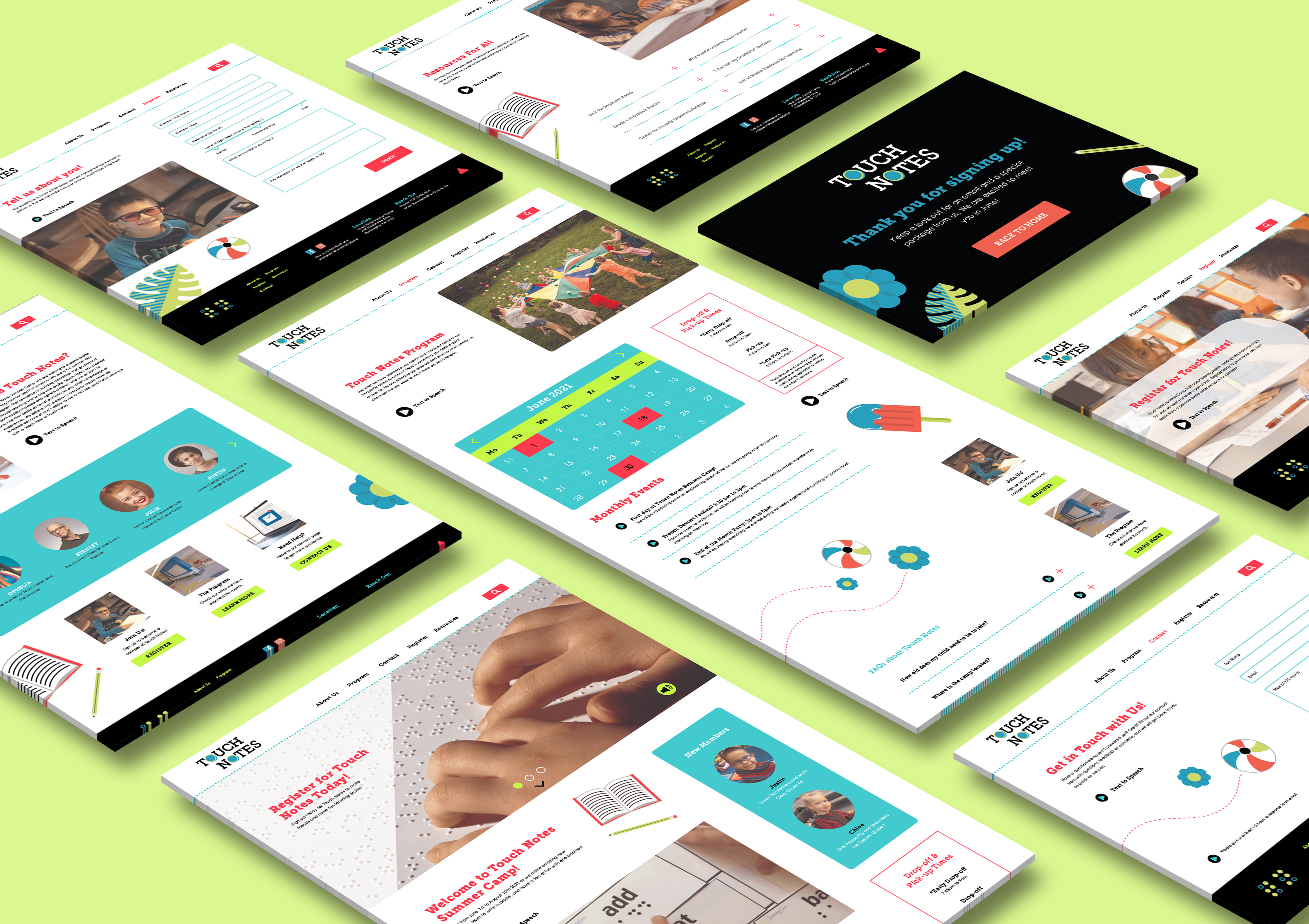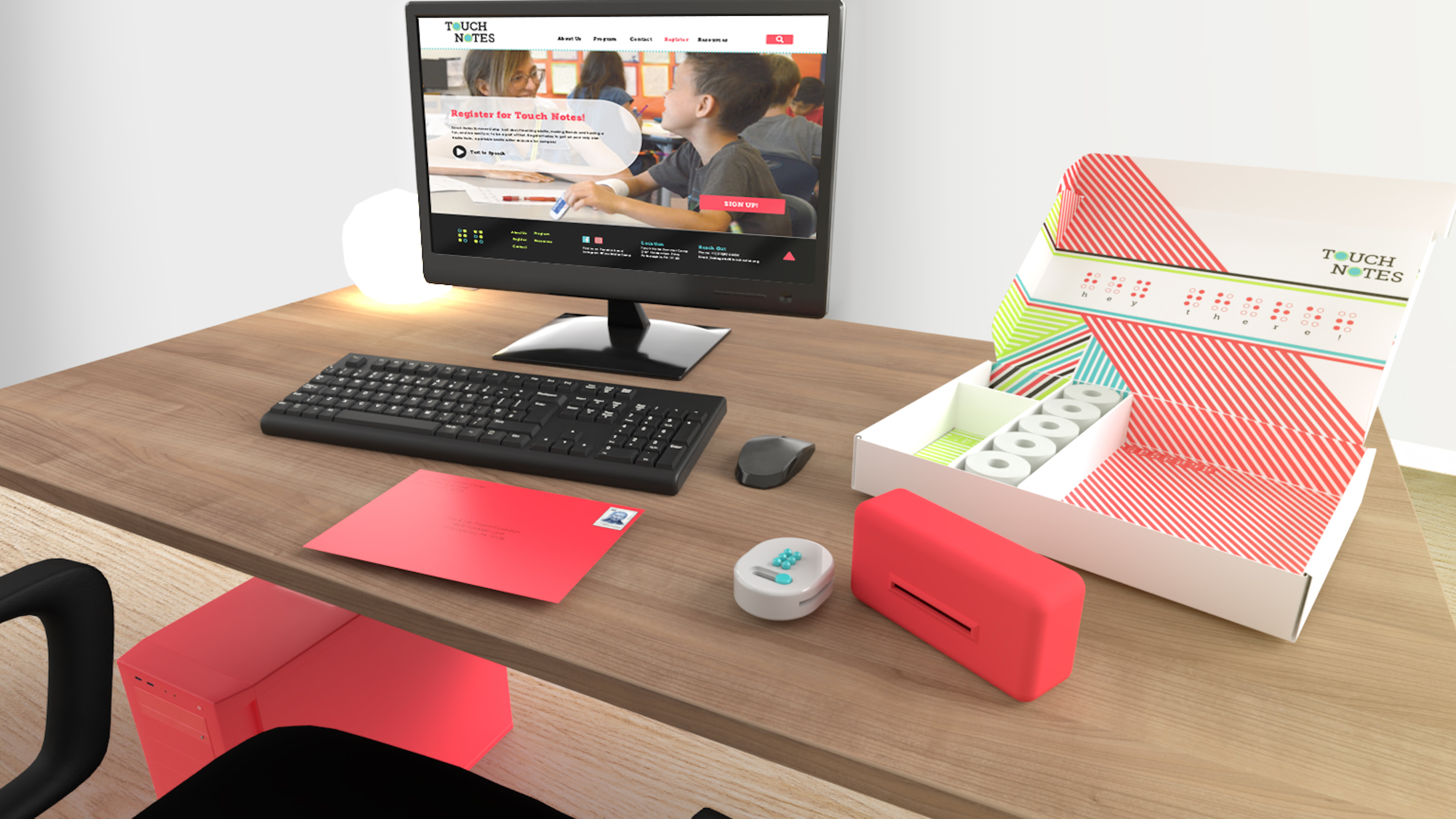 For my senior project, I aimed to create a physical product using a 3D printer. Furthermore, I wished to express my belief that visual impairments should never hinder a person’s creativity. Touch Notes Summer Camp is envisioned as a summer day camp for K-6 children, both visually impaired and sighted, focusing on fostering friendships that transcend sight through learning and writing in braille.