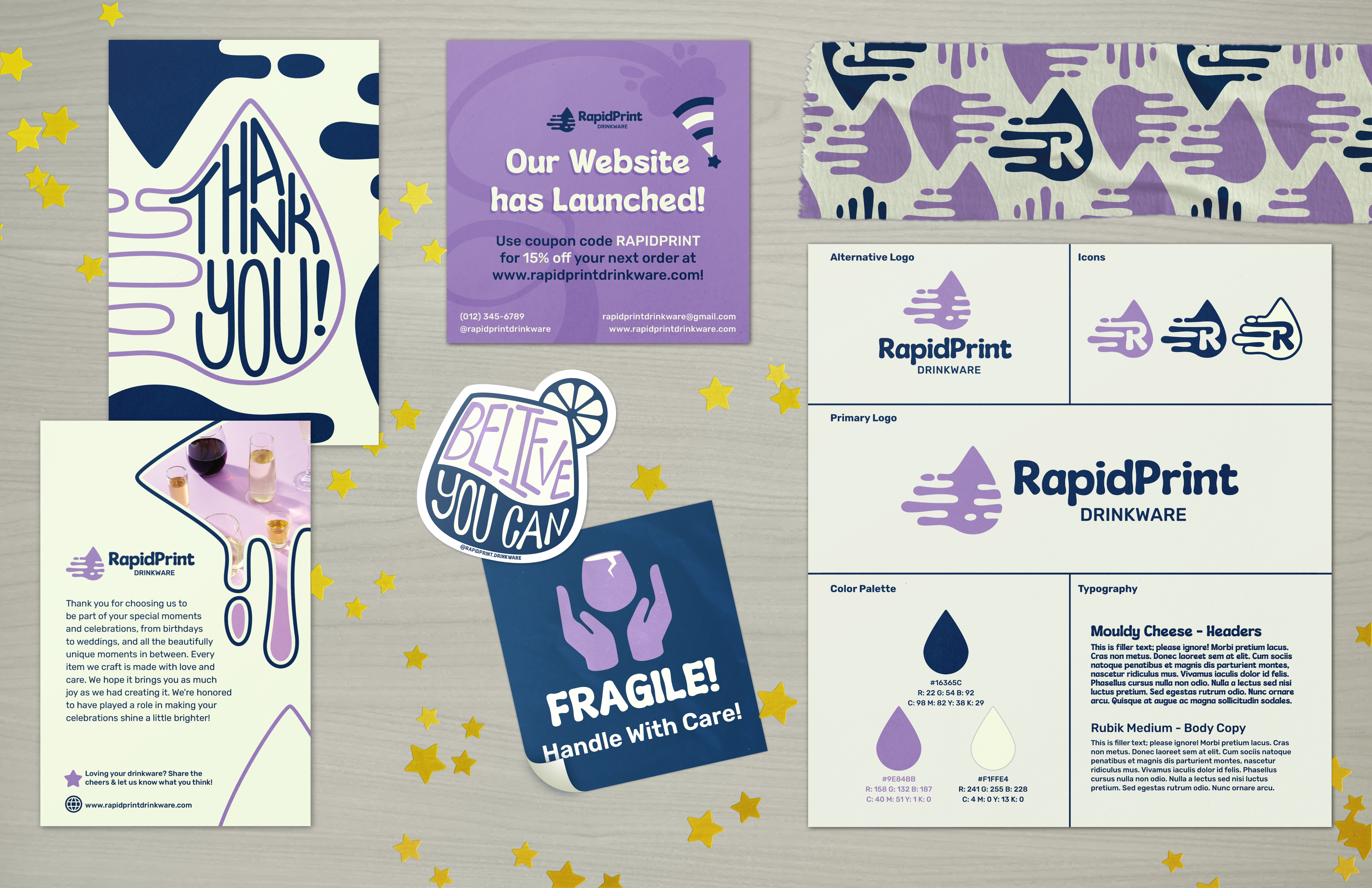 RapidPrint Drinkware had outgrown its original branding, which no longer captured the company’s energy or direction. The solution? A bold rebrand rooted in clarity, cohesion, and creativity. From reimagining the logo to crafting a full brand guide, the new visual identity brings the company’s values to life—clean, fast, and memorable—just like the products it delivers.